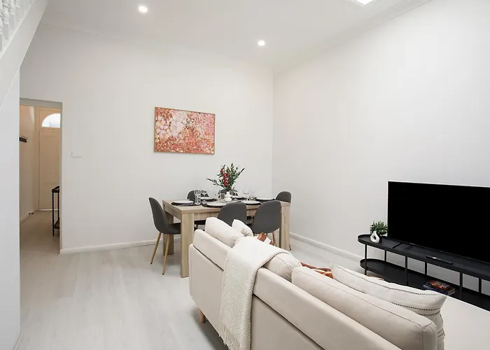 Het vakantiehuis ligt in de buurt van het Capitol Theater en op 15 minuten rijden van de luchthaven Kingsford Smith. Deze villa in de Glebe wijk biedt ook toegang tot natuurlijke bezienswaardigheden zoals Het Domein, 2 km verder. Central 3Br Glebe With Free Street Parking & Pet Friendly - Walk To Markets & Cafes villa is gelegen binnen een 10-minuten rijafstand van de Sydney Harbour Bridge en op 15 minuten met de auto vanaf uitgaansgelegenheden zoals Opera van Sydney.